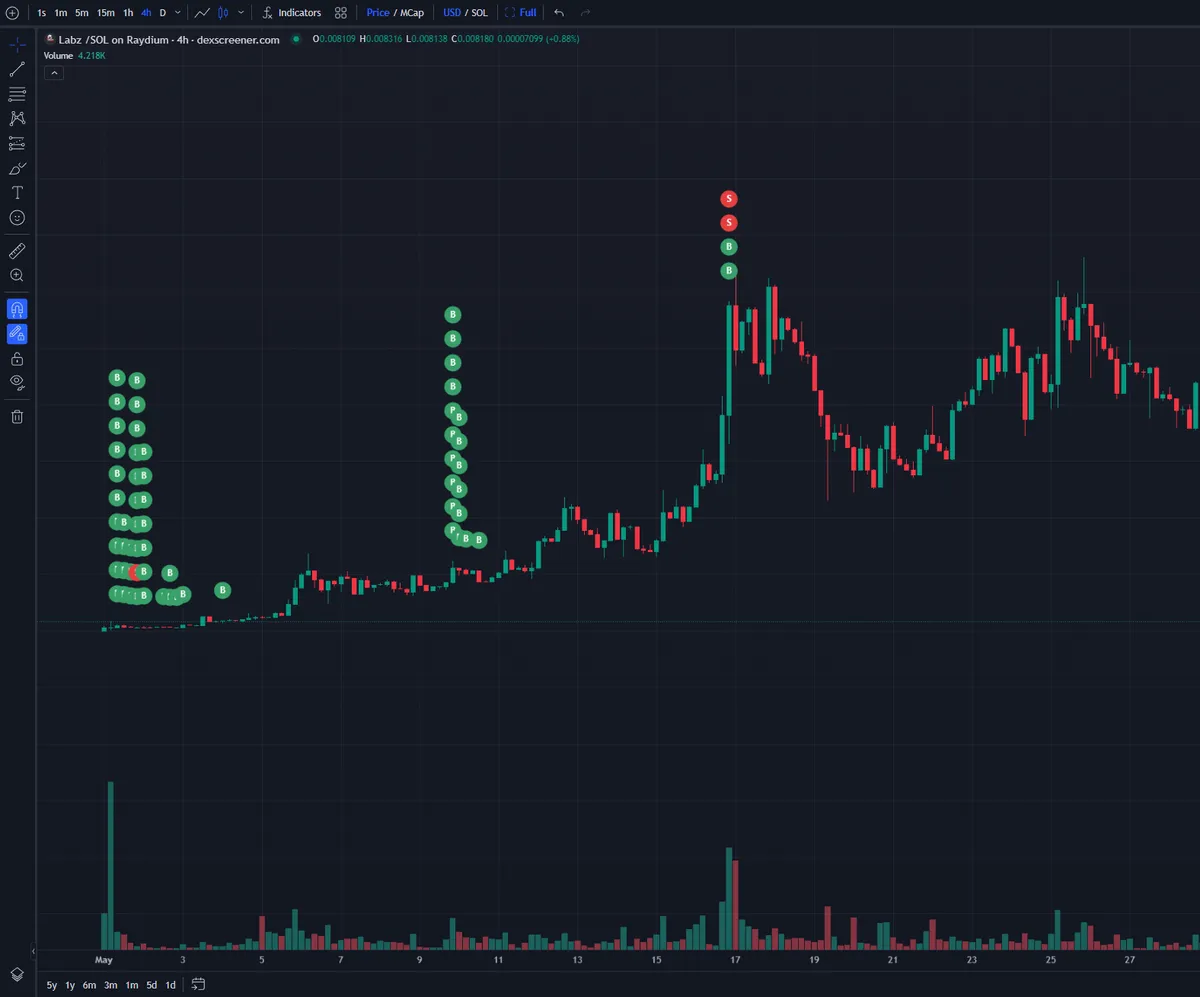 The largest single sale of LABZ occurred three days later on May 19, when the token’s price, though past its peak, was still high. An unidentified whale dumped over $70,000 worth of tokens, making a profit of about $68,000 after buying LABZ on the day of the token launch.
