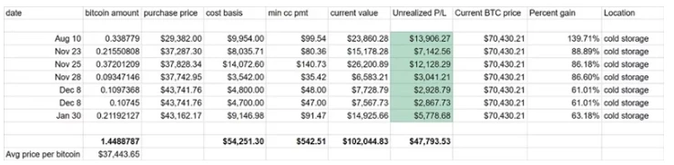 The average price of this Bitcoin is $37,443 (as of this writing, his average price has more than doubled);
