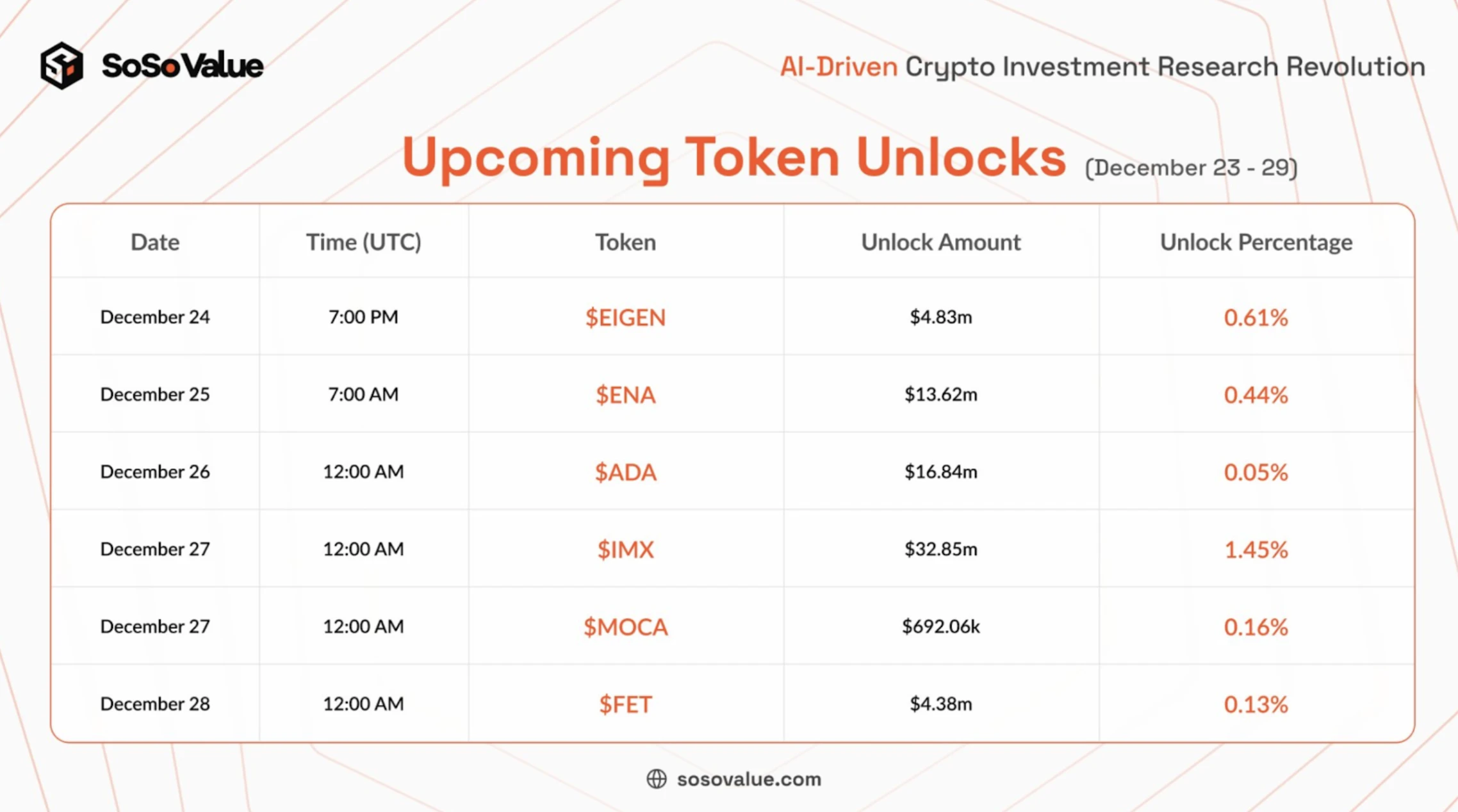 Recently, Cardano (ADA) will unlock tokens this week. It is expected that about 16.84 million ADA tokens will be unlocked, which accounts for 0.05% of the current circulation.