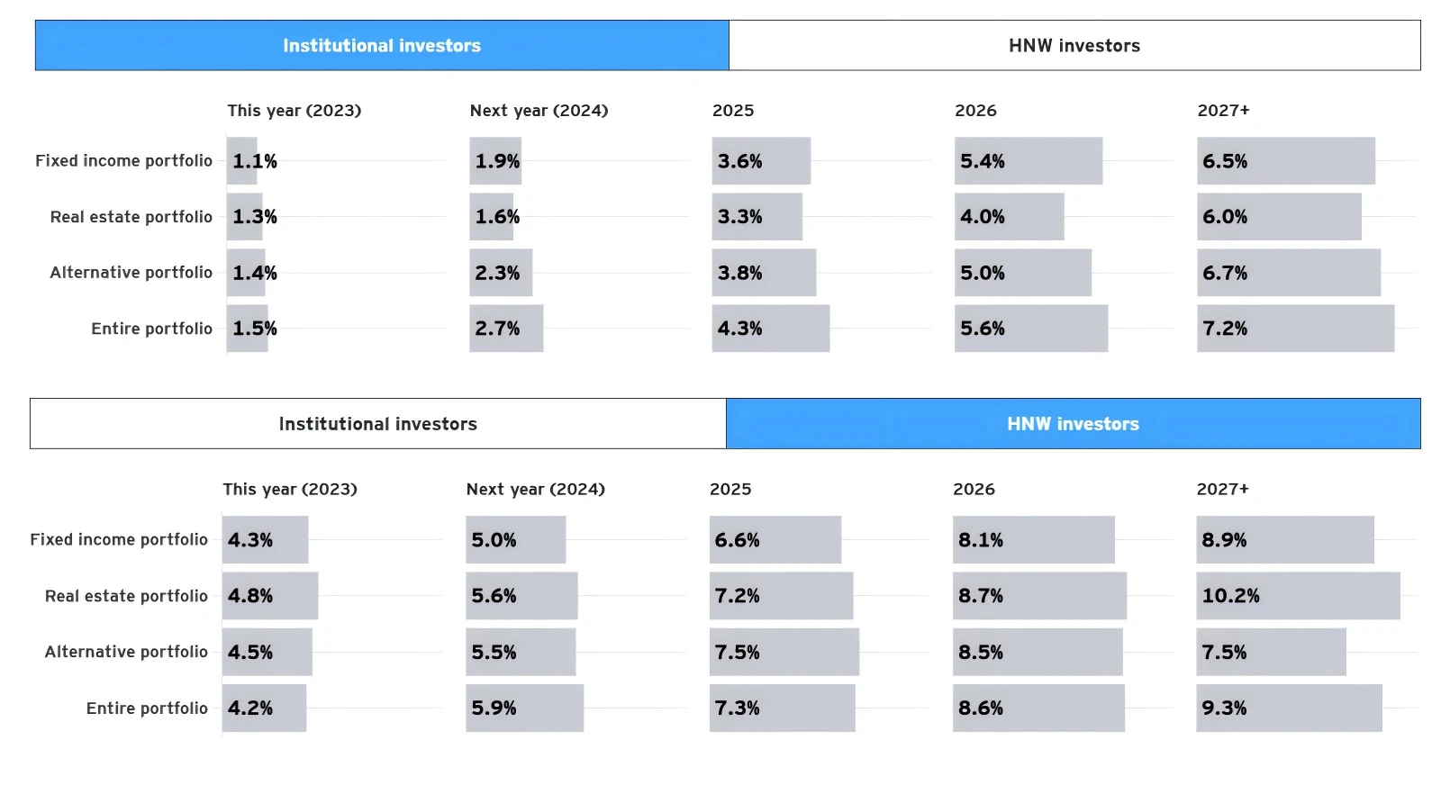 According to EYs forecast, by 2026, institutions and high-net-worth investors are expected to allocate 5.6% and 8.6% of their portfolios to tokenized assets, which means that within three years starting from this year, the incremental increase in RWA tokenized investment allocations by institutions and high-net-worth investors will generally exceed 100%.