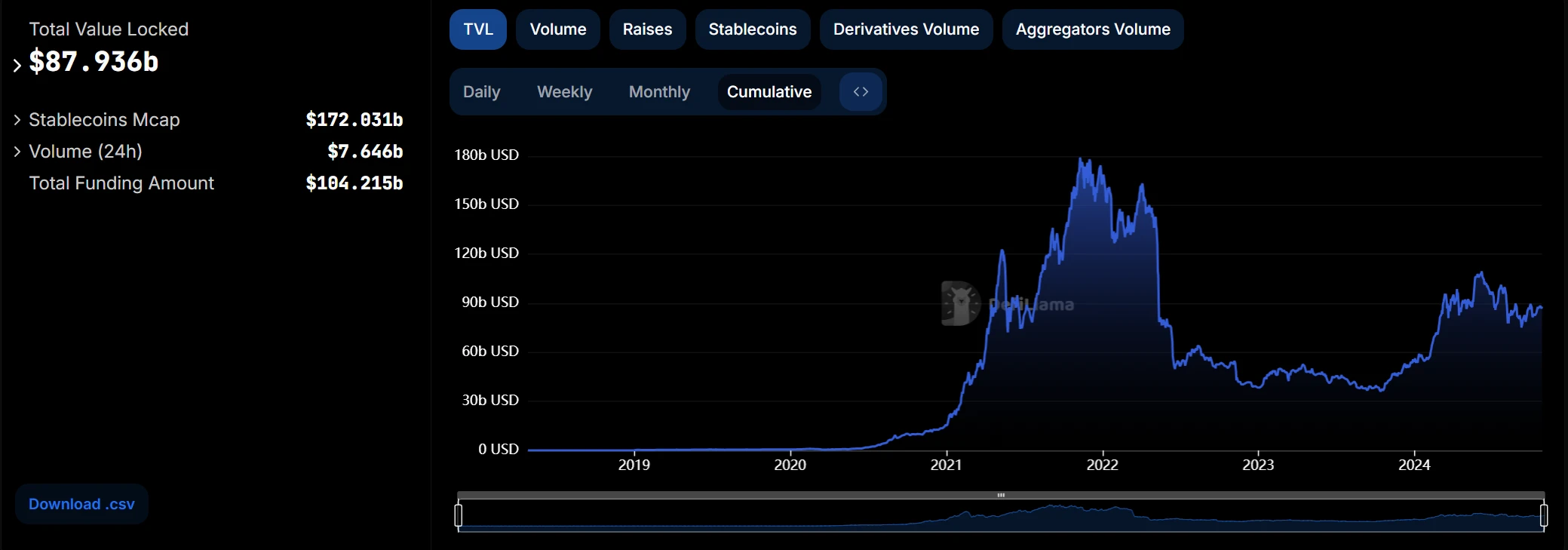 It should be noted that since Compound detonated the DeFi summer in 2020, the volume of digital assets has ushered in a substantial development. As of October 25, 2024, the on-chain TVL is as high as 88 billion US dollars. However, compared with the trillions of dollars of tokenizable RWA assets (bonds, gold, stocks, real estate, etc.), this volume is still insignificant, so RWA tokenization will undoubtedly bring strong incremental momentum to on-chain assets.