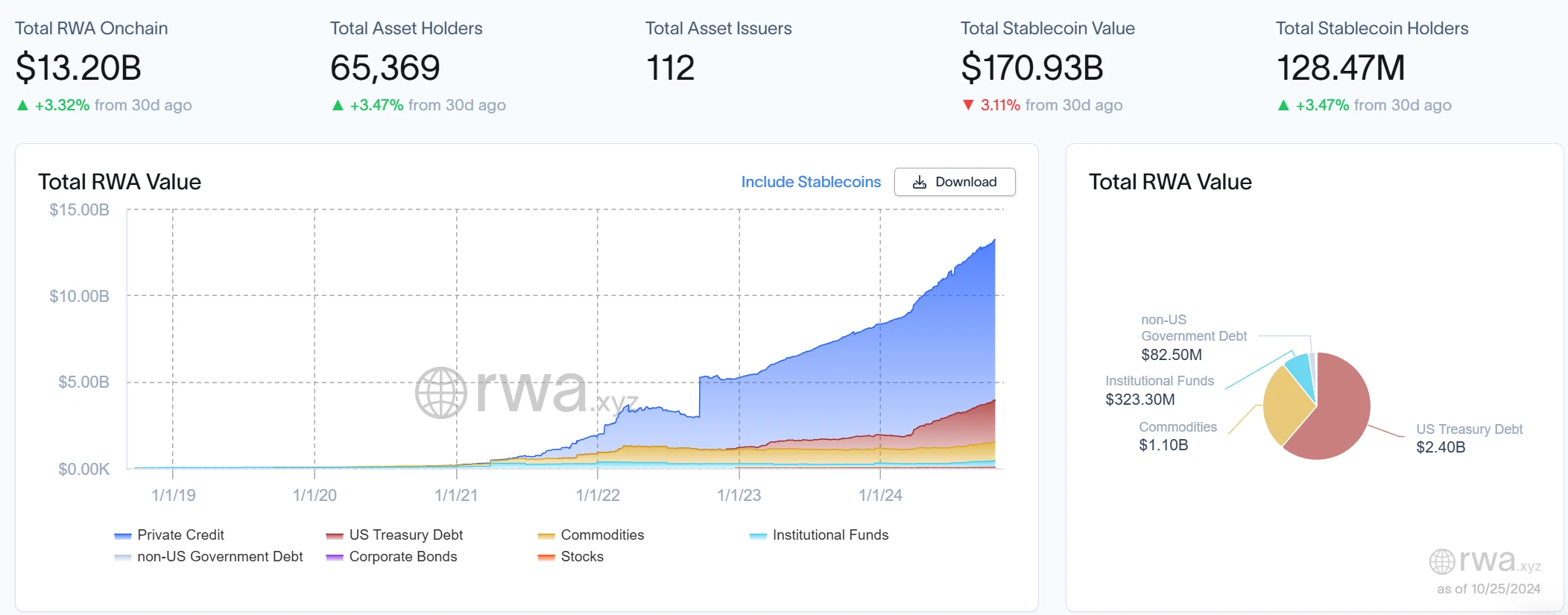 これはつまり RWA can become the main driving force for the increase in on-chain digital assets, enabling Web3 to effectively reach the huge asset pool of traditional markets , such as the global bond market (US$133 trillion) and the gold market (US$13.5 trillion) – under the framework of tokenization, these physical assets can not only enter the on-chain trading ecosystem, but also obtain DeFi income through lending and staking, introducing real-income asset support to the digital asset market and enhancing its value foundation.
