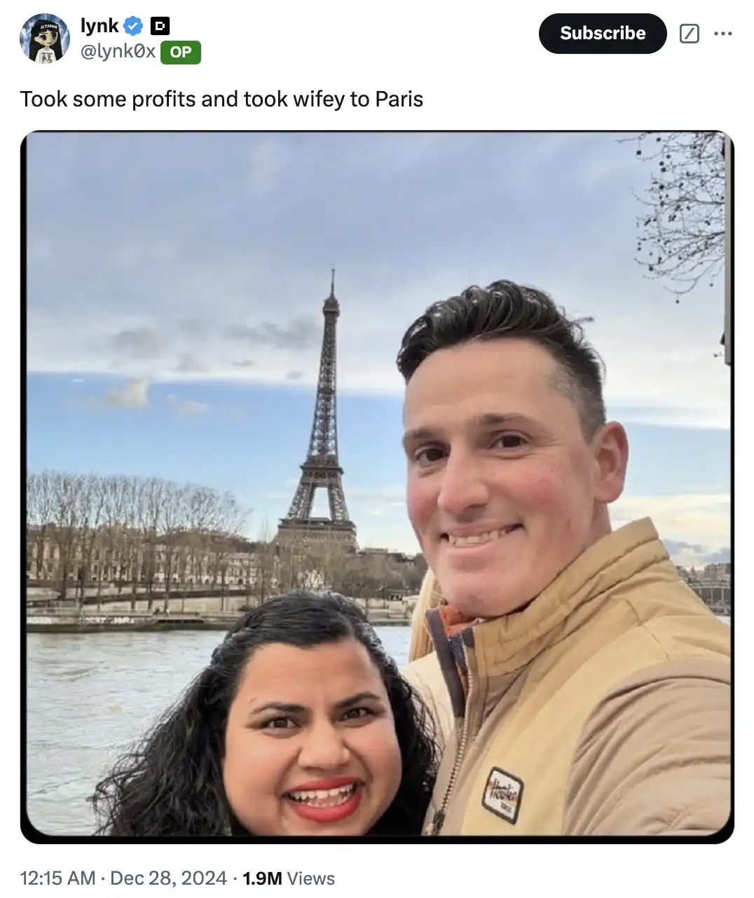 28. The meme of I made some money and took my wife to Paris (he reposted this meme, but its still very funny).