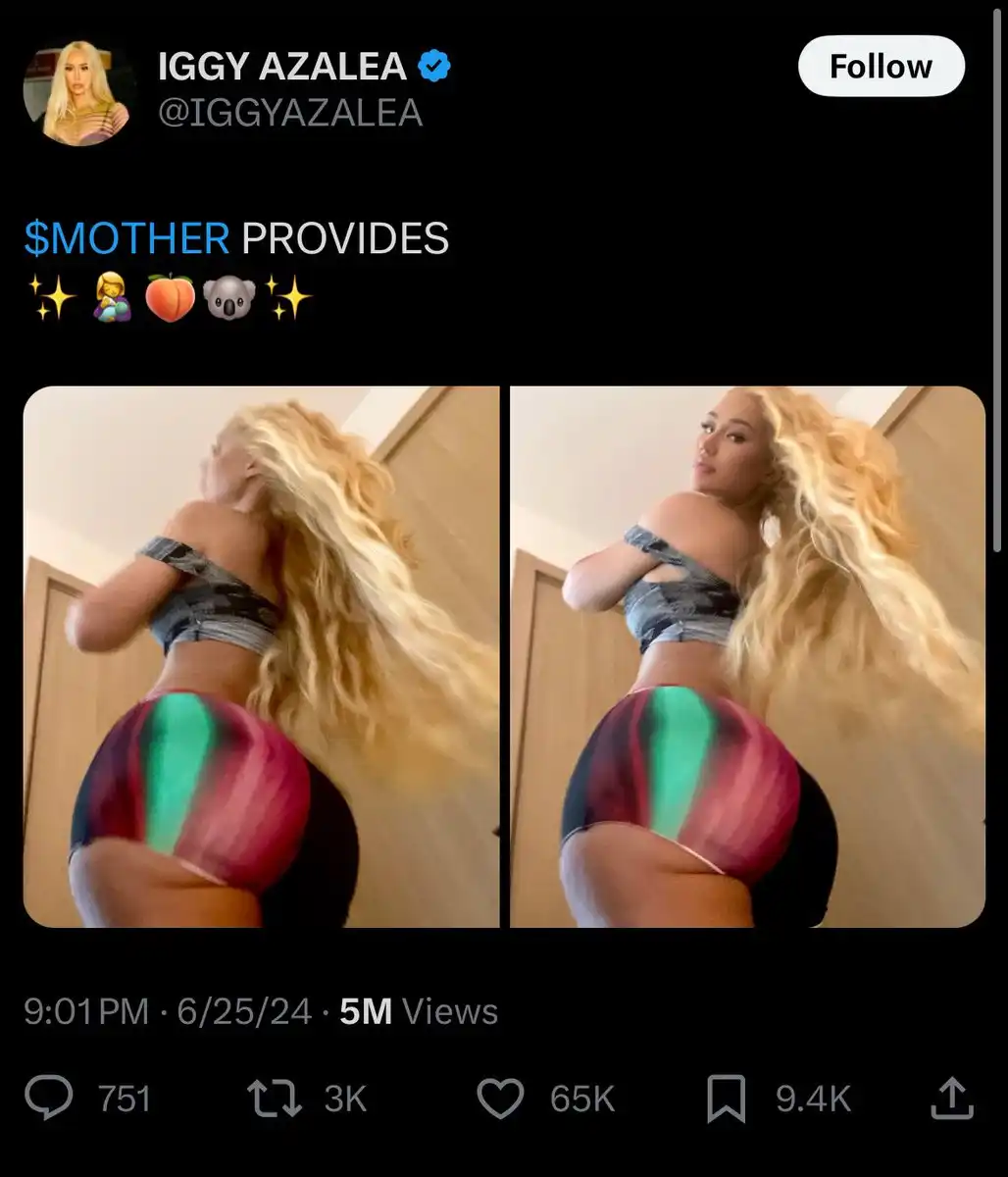 4. Iggy Azalea launched $Mother, setting off a new trend of celebrities issuing tokens.
