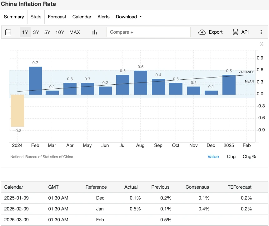 Chinas inflation data reflects market demand, while inflation trends in emerging markets (such as Türkiye, Brazil, etc.) affect local cryptocurrency adoption rates and global investment sentiment.