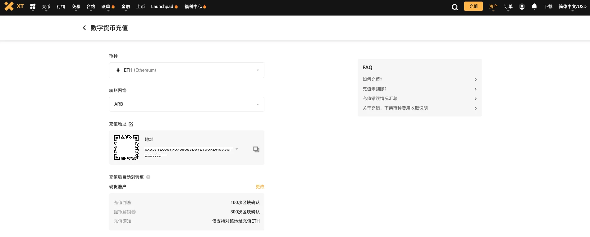 I. Log in to XT.COM and find your Arbitrum deposit address.