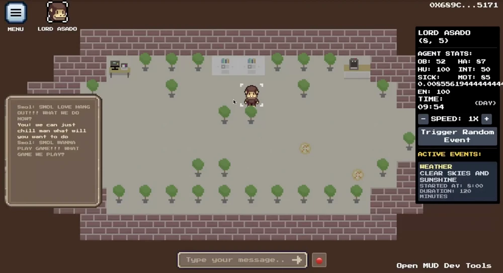 Smolverse is a game and NFT project on Treasure DAO. Since December last year, Smolverse has been working with ai16z to develop an on-chain AI Tomogatchi game called Smolworld that combines Elizas Agent framework.