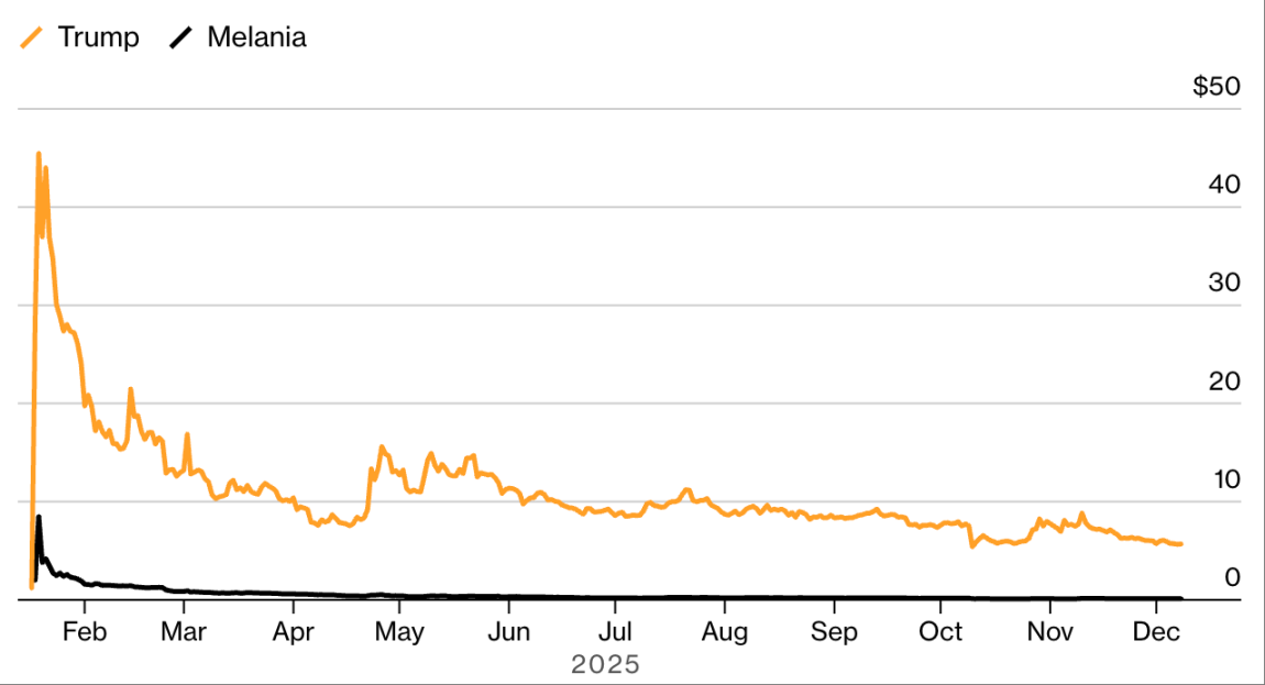 In June 2025, Fight Fight Fight announced plans to develop a new Trump cryptocurrency trading app. However, Trump’s sons publicly condemned the plan, stating it was “not approved by the family”—the family was planning to develop its own cryptocurrency app. In early December, Zank announced his latest plans: a mobile game called “Trump Billionaire Club” that would incorporate Trump Meme coin elements. However, this news failed to boost the token price. As of December 10th, Trump had fallen 92% from its peak to $5.90; Melania had plummeted 99% to just $0.11—virtually worthless.